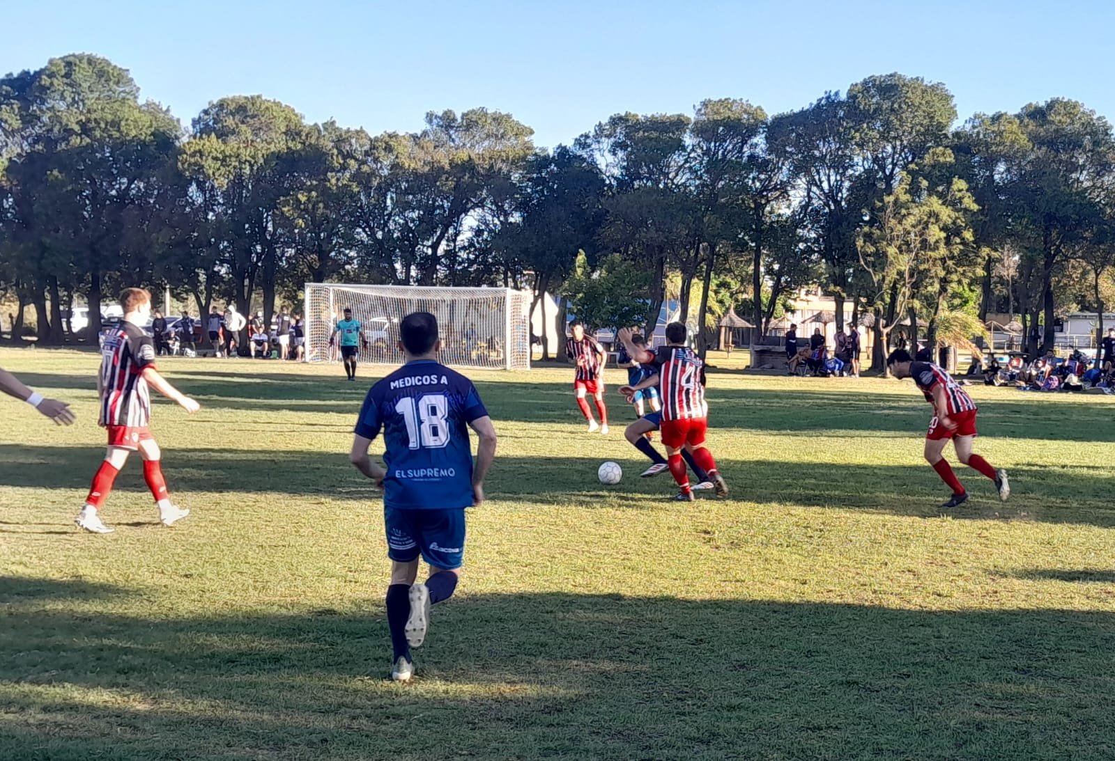 Fue Médicos el que se puso en ventaja a los 10′. Tiro libre de Clavero, Britos bajó la pelota y Zufiaurre no perdonó. A los 2o dudó la defensa bancaria y Nicolás Pérez facturó para poner el dos a cero.